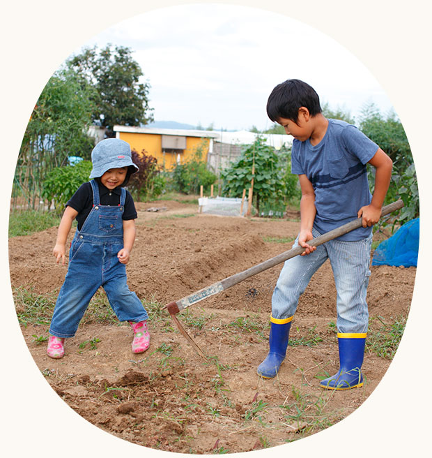 近隣の保育園の子どもたちが自然の果物と ふれあう場としても提供しております。 普段食卓に並ぶ果物や野菜の収穫体験などを行っています。